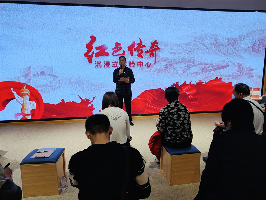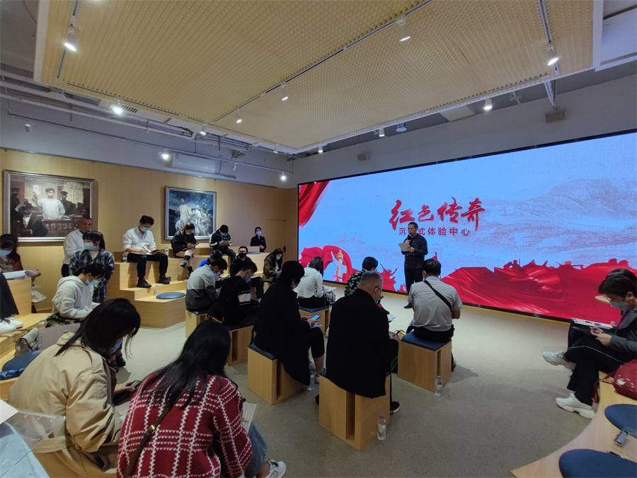 在麗竹學(xué)校黨支部書記王良友同志的帶領(lǐng)下,黨員代表李玲玲,入黨積極分子代表楊燕華一行人先跟著大部隊來到了《紅色傳奇》》沉浸式體驗中心。